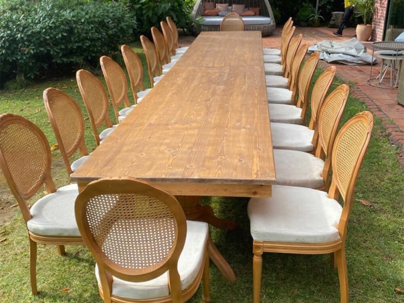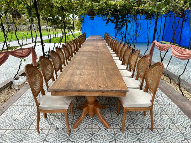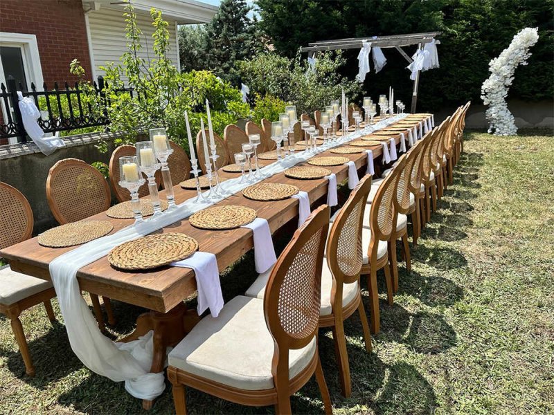 Rustik tarz etkinliklerde Hazeran masa ve sandalyeler, dekoratif ve şık bir dokunuş sağlar.