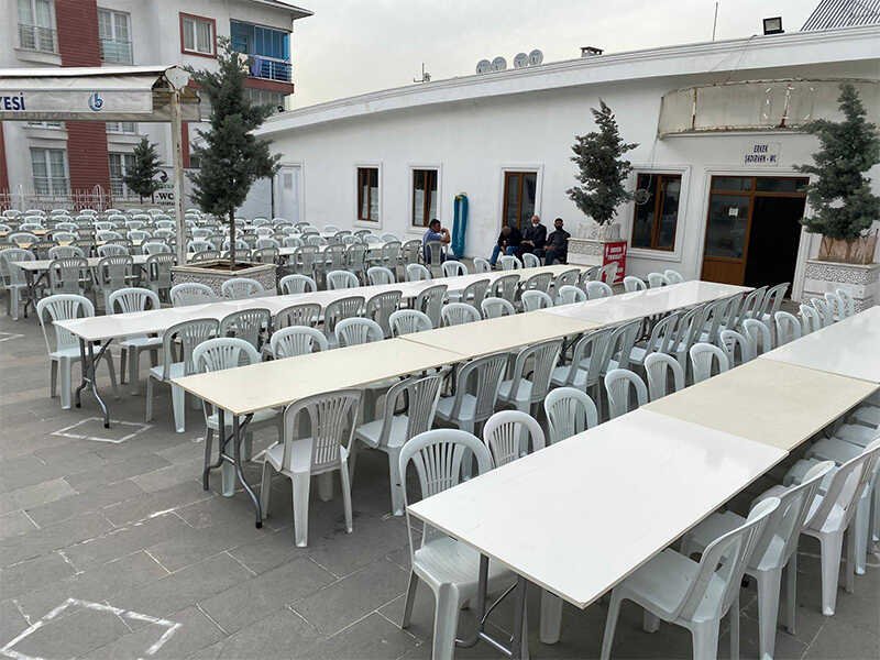 Tüm plastik masa ve sandalyeler hijyenik olarak temizlenir ve organizasyon sırasında sağlıklı bir kullanım sunar.